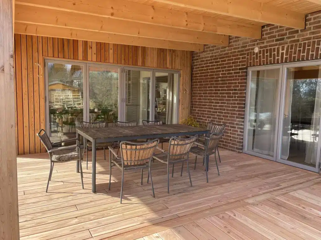 Terrassen und Außenflächen aus Holz, Keramik oder Naturstein – sauber eingebunden in die Gesamtanlage.